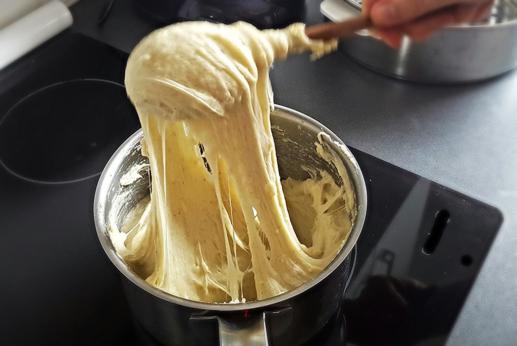 Lors de la cuisson, la pâte est versée lentement sur un moule spécial qui se manœuvre avec un tourne broche. Il faut entre dix et vingt couches de pâte pour constituer un bon gâteau.