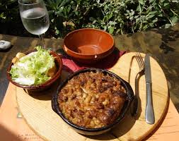 Cette variante du cassoulet contient des haricots blancs, du confit d’oie, du jarret, de l’épaule de porc, de la saucisse, de la couenne de porc, de la carotte, du poireau et du céleri. Ce riche mélange termine de cuire dans un four de boulanger avec des ajoncs (une plante d’origine occidentale.)