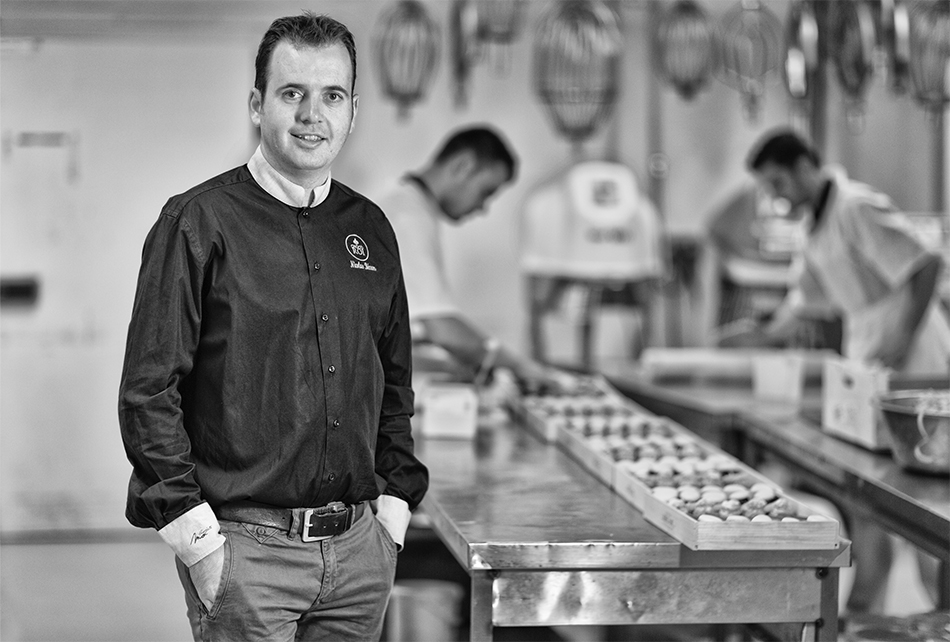 En naissant dans le pétrin ! J'ai passé mon enfance et mon adolescence dans le fournil familial. Il était écrit que je devienne boulanger, même si mes parents ont un peu tenté de me décourager. Ils avaient passé leur vie au travail, ils savaient que c'est une vie difficile. J'ai fait des études de gestion, puis une formation de boulanger-pâtissier. J'ai acheté ma première boulangerie, puis d'autres, sans avoir pour autant de grandes ambitions. Depuis le début, je m'amuse, je joue. Ce que je fais aujourd'hui, j'ai l'impression que c'est ce que je faisais gamin dans la cour de récréation. Je joue aux billes, autour d'un arbre. Sauf que les enjeux ne sont pas les mêmes. Mais je joue quand même. J'ai toujours envie d'aller plus loin. J'accueille toutes les opportunités qui se présentent, même si toutes ne se réalisent pas. Créer un gâteau est sans doute né de cette envie de créer ce qui n'existe pas, de ne jamais faire la même chose.